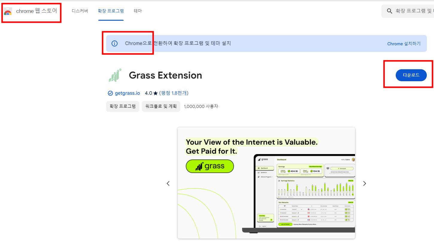 브라우저요 grass확장 프로그램 설치 화면이 나오고,
